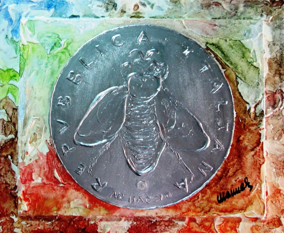 Si certifica che l'artista Manuel lunedì 20 ottobre 2014 ha archiviato la foto dell'opera GA90945 dal titolo "LIRE 2 1970 retro con moneta originale applicata"